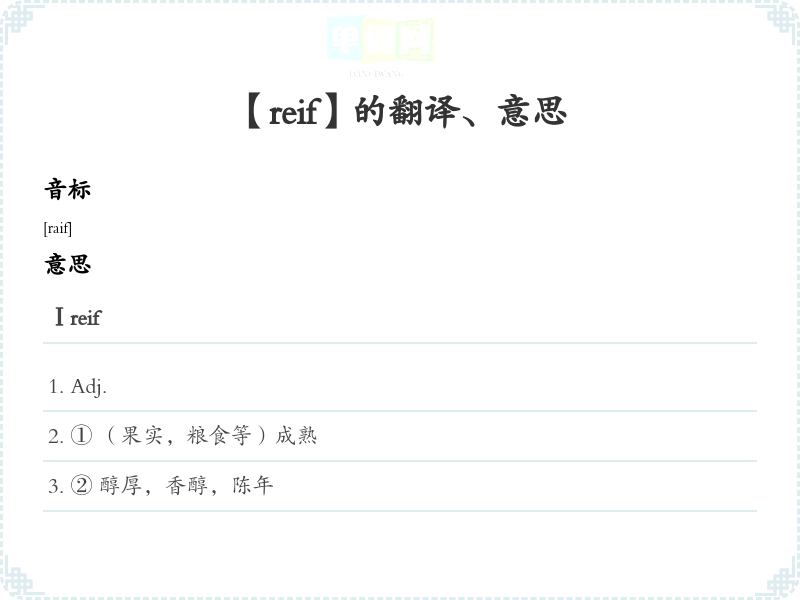 ⑤ 对于…已准备就绪für etw. reif seinWir sind reif für einen Urlaub.我们已做好休假准备。Ⅱ -reif构成形容词,构词有限