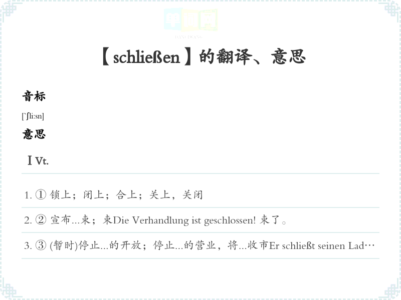 【schließen】是什么意思、字义解释