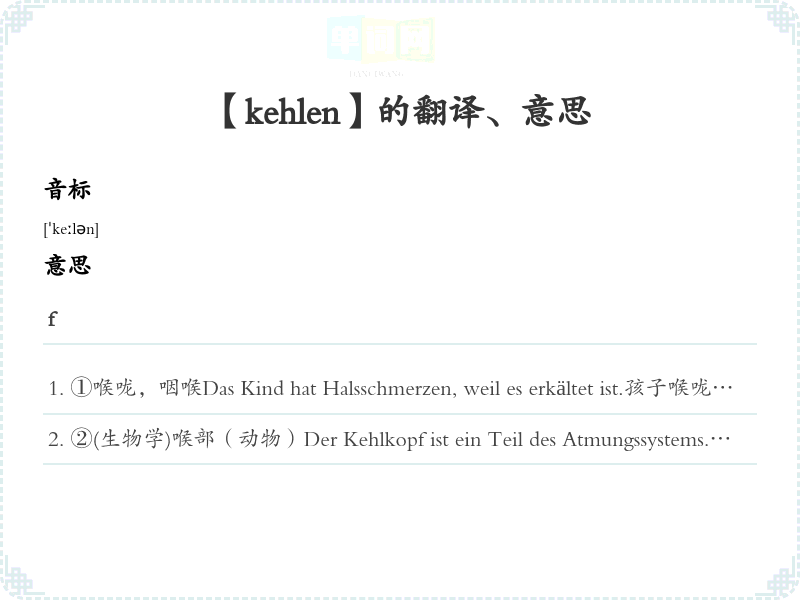 【kehlen】是什么意思、字义解释