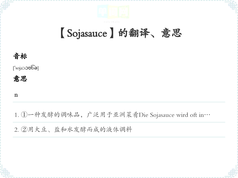 【Sojasauce】是什么意思、字义解释