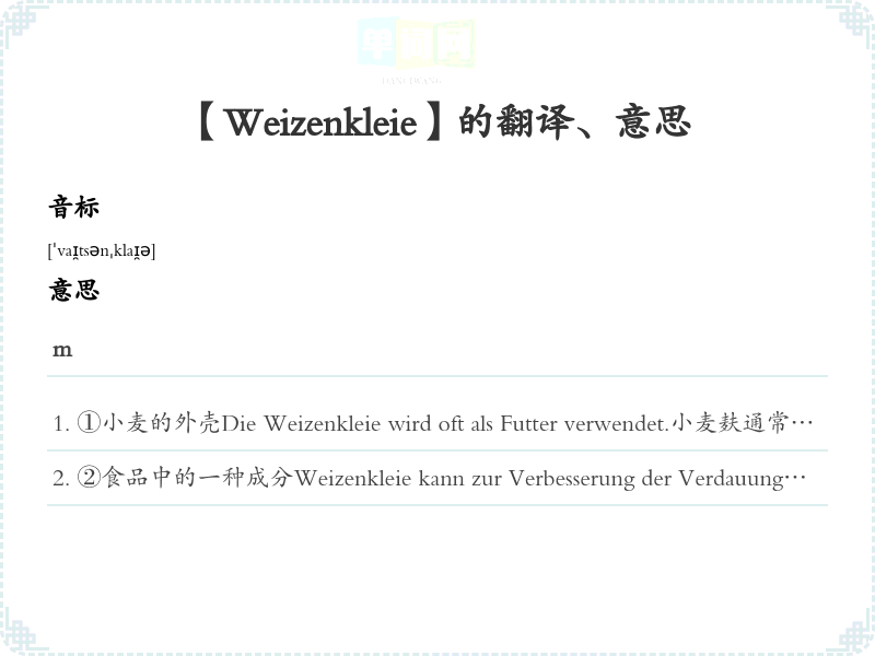 ②食品中的一种成分Weizenkleie kann zur Verbesserung der Verdauung beitragen.小麦麸可以改善消化。
