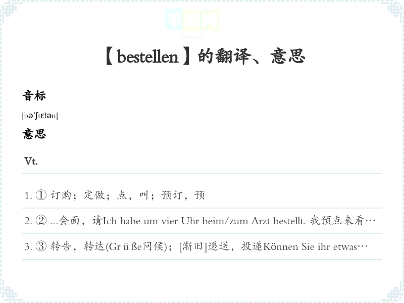 【bestellen】是什么意思、字义解释