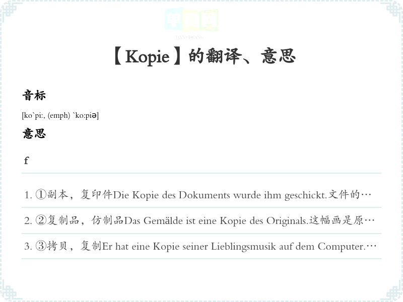 【Kopie】是什么意思、字义解释