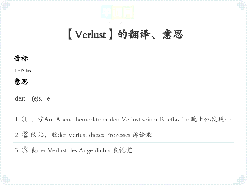 【Verlust】是什么意思、字义解释
