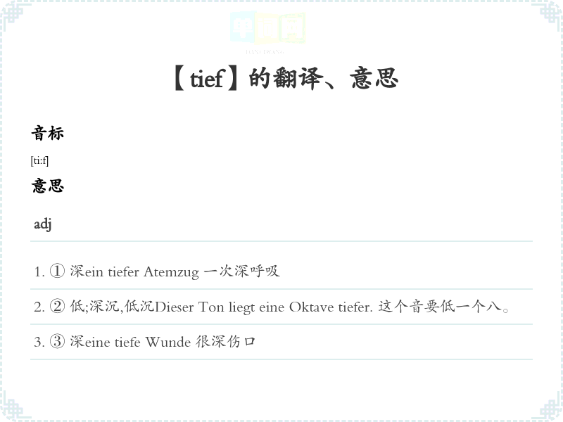 【tief】 近义词:、 反义词: 联想词