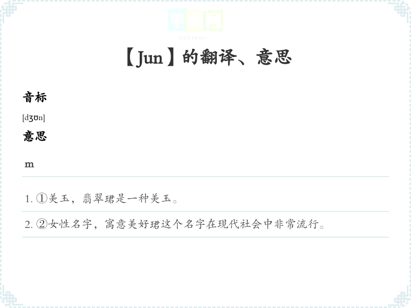 - 1. 珺是一个很美的名字。