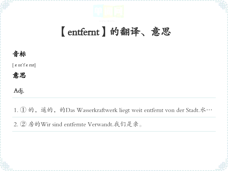 【entfernt】是什么意思、字义解释