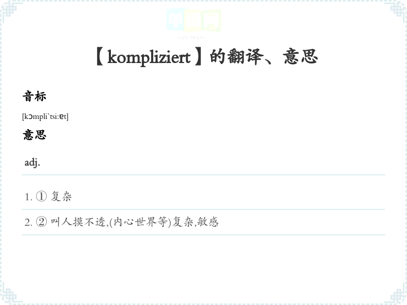 【kompliziert】是什么意思、字义解释