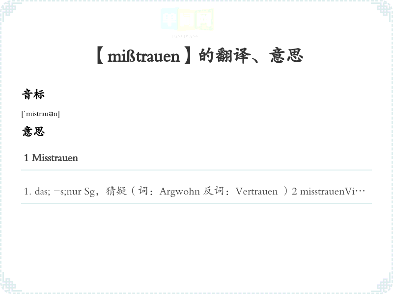【mißtrauen】是什么意思、字义解释