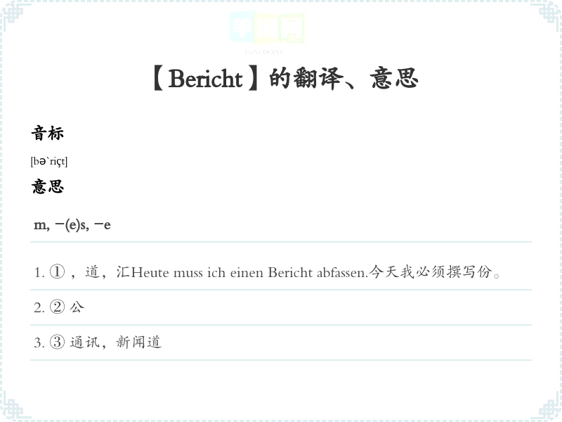 【Bericht】是什么意思、字义解释