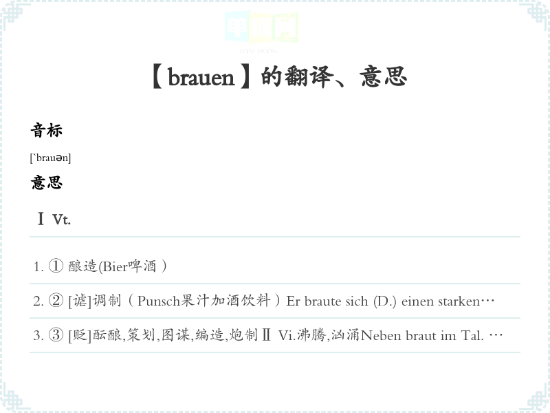 【brauen】是什么意思、字义解释