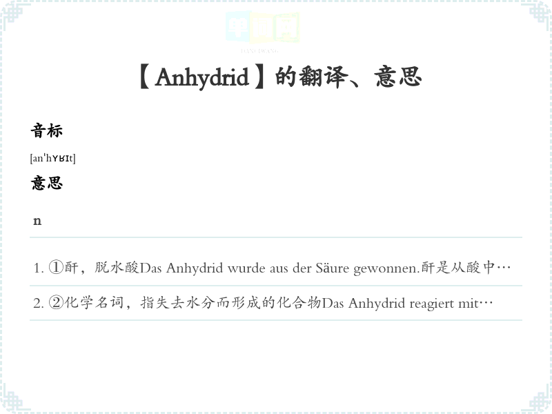 【Anhydrid】是什么意思、字义解释