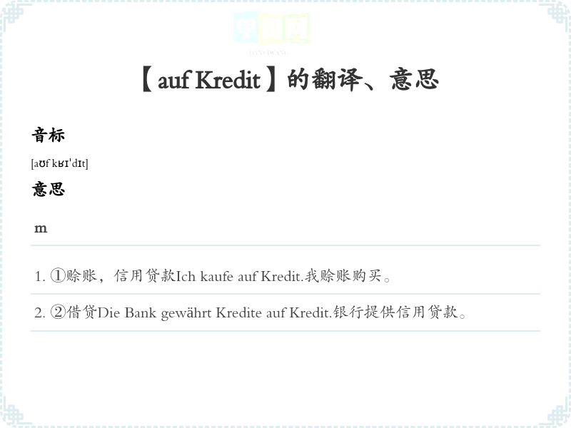 【auf Kredit】是什么意思、字义解释