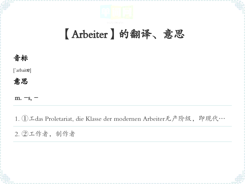 【Arbeiter】是什么意思、字义解释