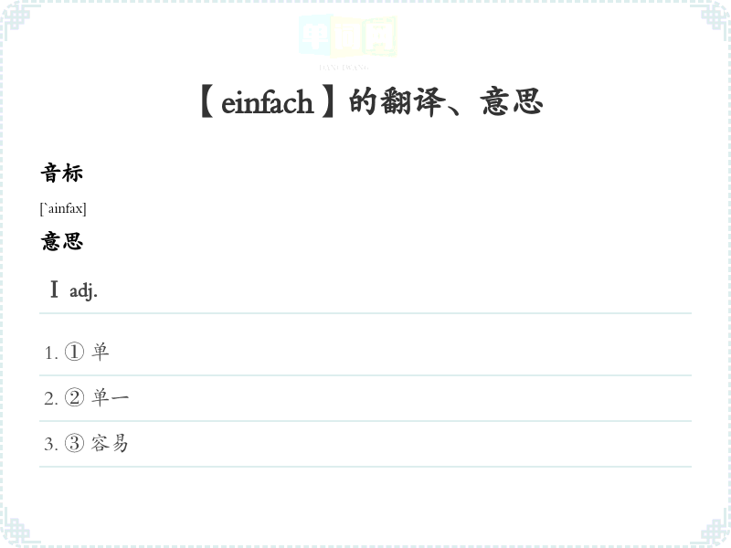 【einfach】是什么意思、字义解释