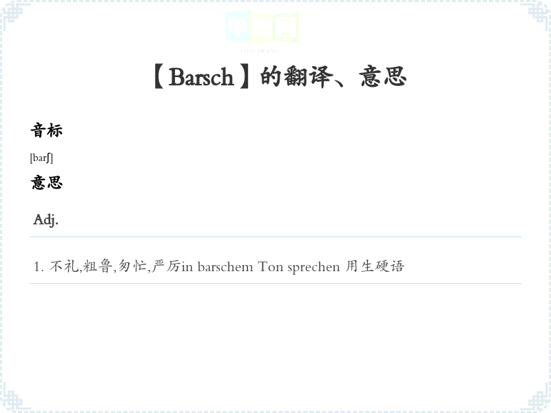 【Barsch】是什么意思、字义解释