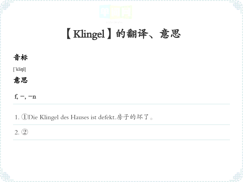 ①Die Klingel des Hauses ist defekt.房子的坏了。