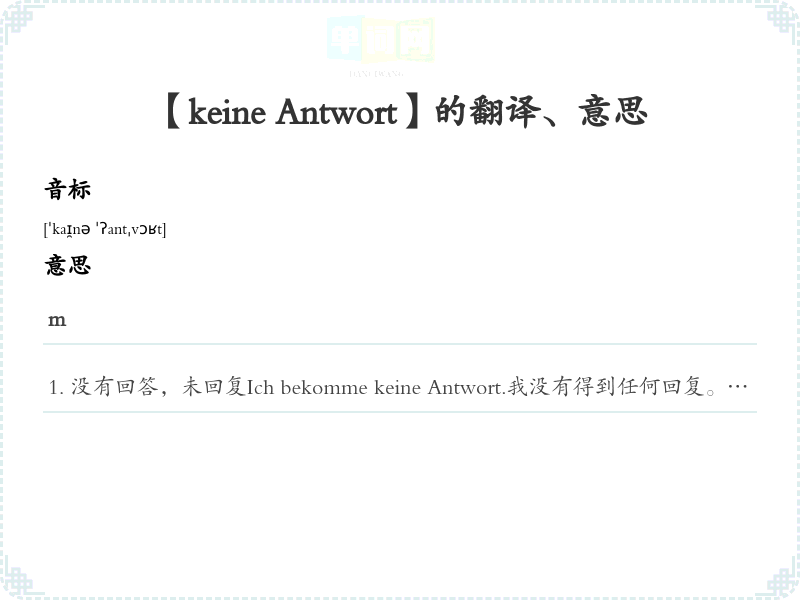 【keine Antwort】是什么意思、字义解释