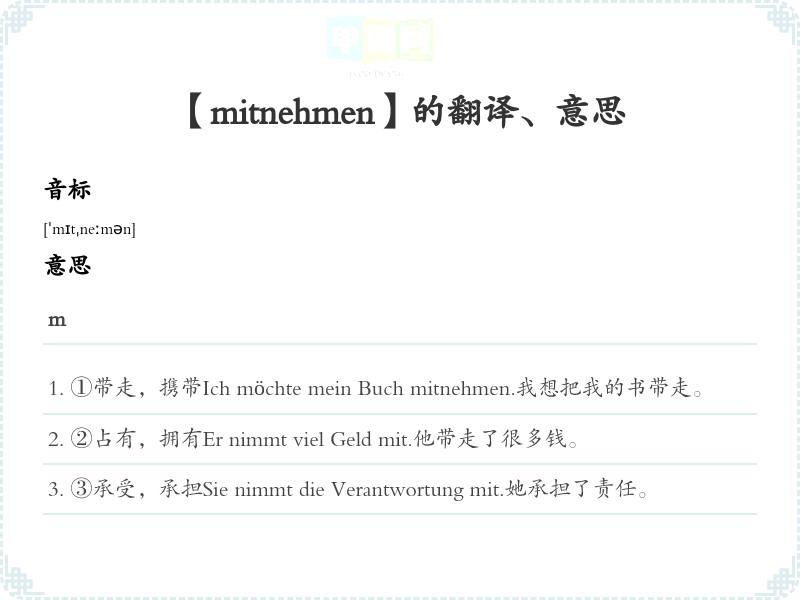 【mitnehmen】是什么意思、字义解释