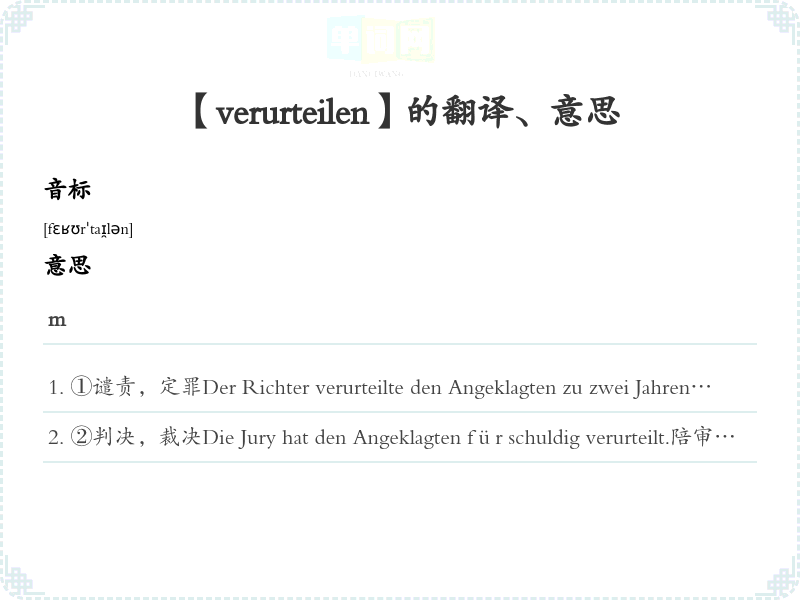 【verurteilen】是什么意思、字义解释