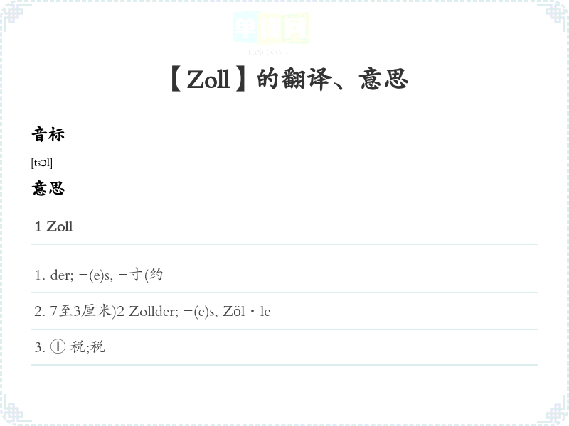 【Zoll】是什么意思、字义解释
