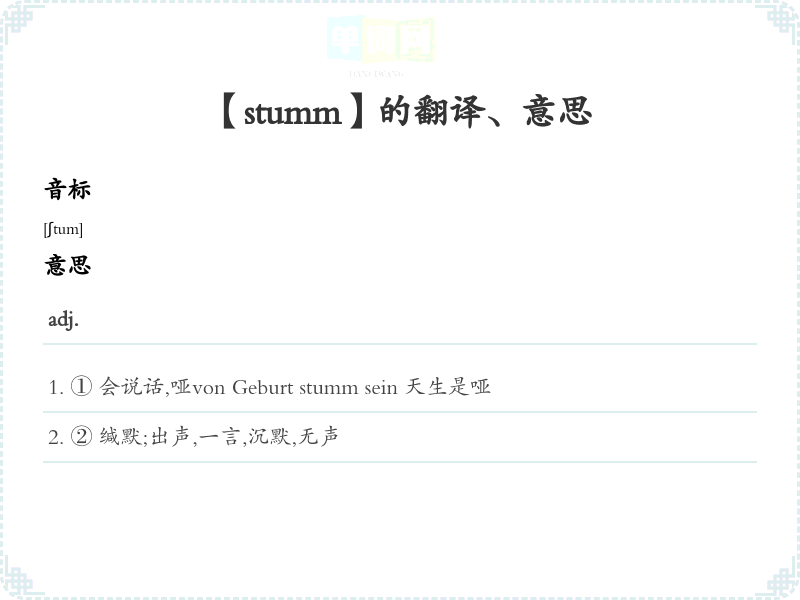 【stumm】是什么意思、字义解释