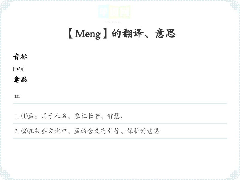 - 2. Der Name Meng bedeutet oft Weisheit und Führung.