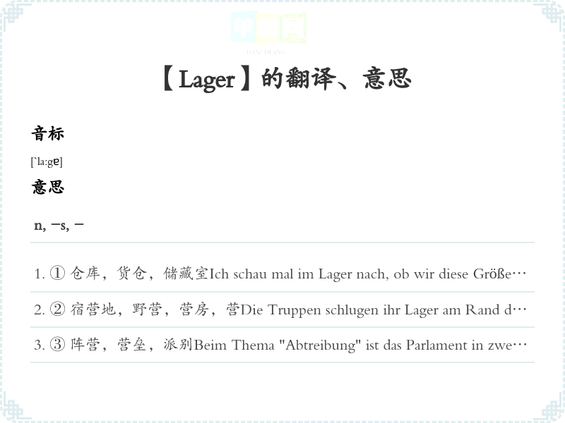 【Lager】是什么意思、字义解释