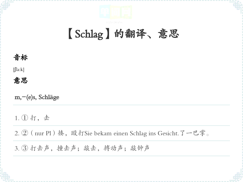 【Schlag】是什么意思、字义解释