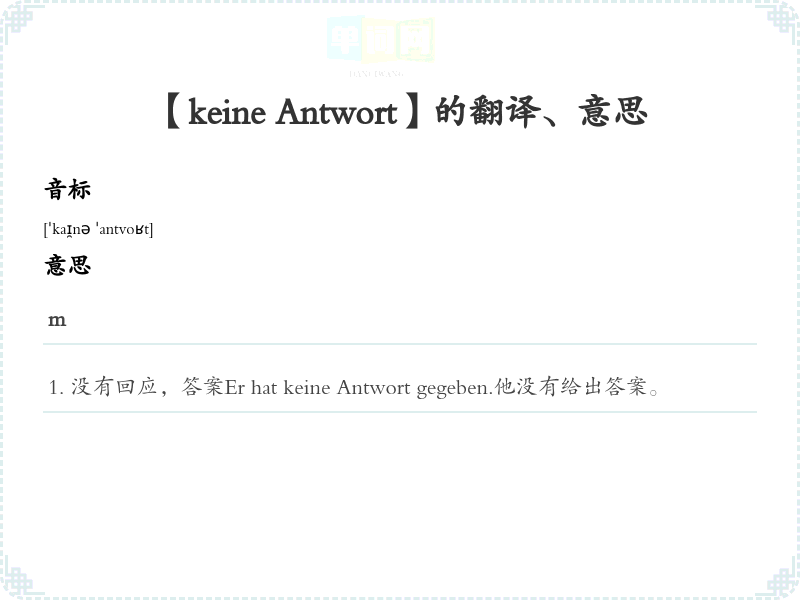 没有回应,答案Er hat keine Antwort gegeben.他没有给出答案。