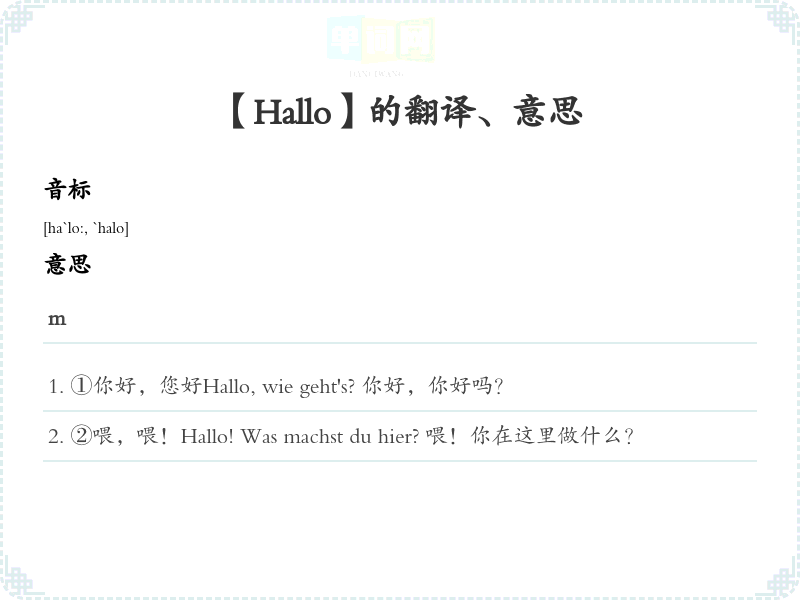 ①你好,您好Hallo, wie geht's? 你好,你好吗?