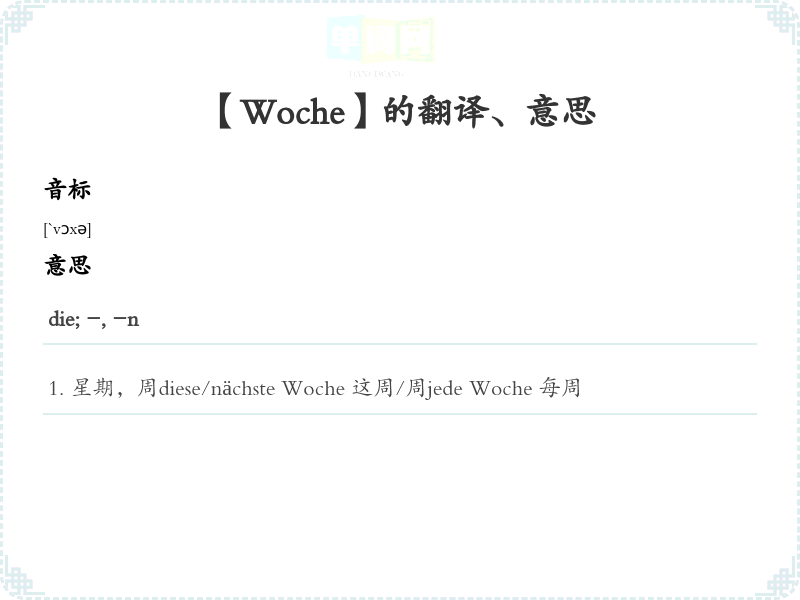 星期,周diese/nächste Woche 这周/周jede Woche 每周