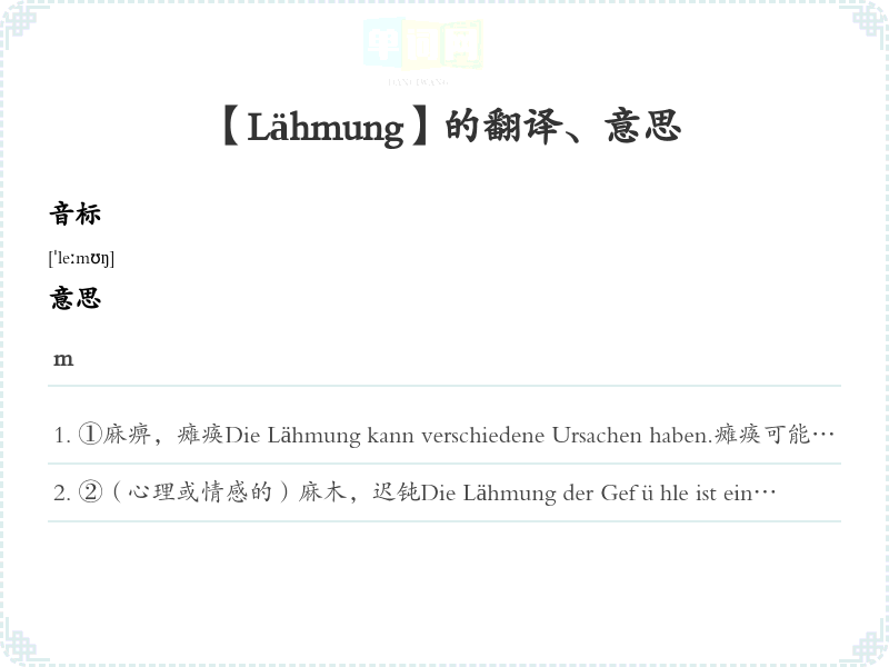 【Lähmung】是什么意思、字义解释
