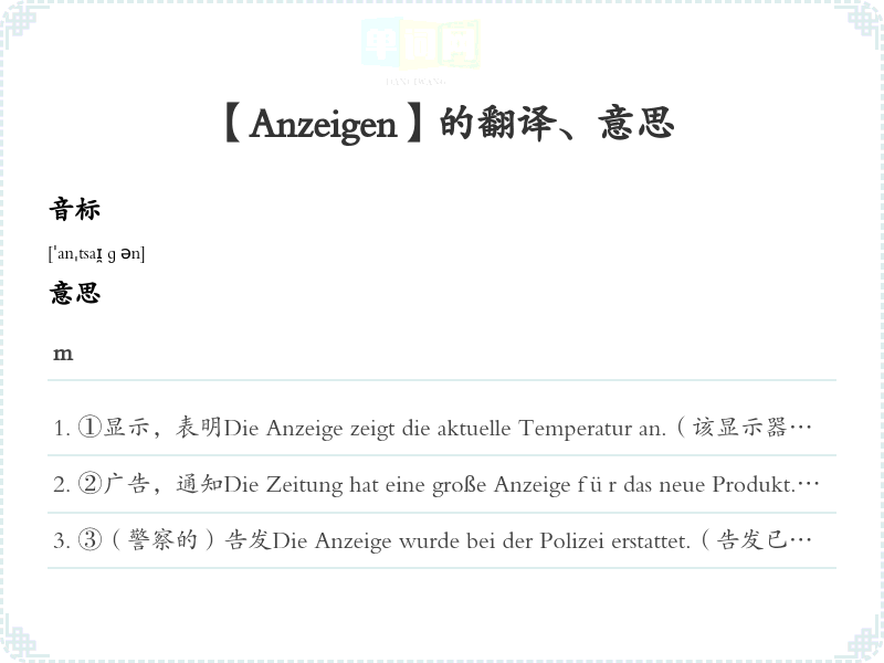 【Anzeigen】是什么意思、字义解释