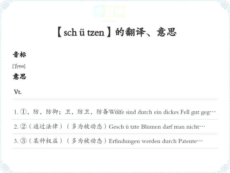 【schützen】是什么意思、字义解释