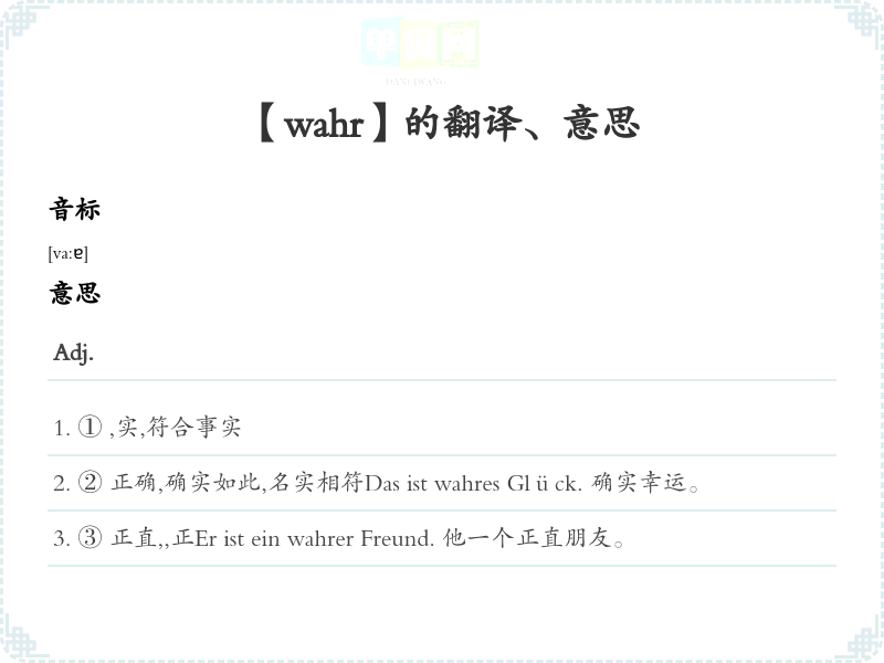 【wahr】是什么意思、字义解释