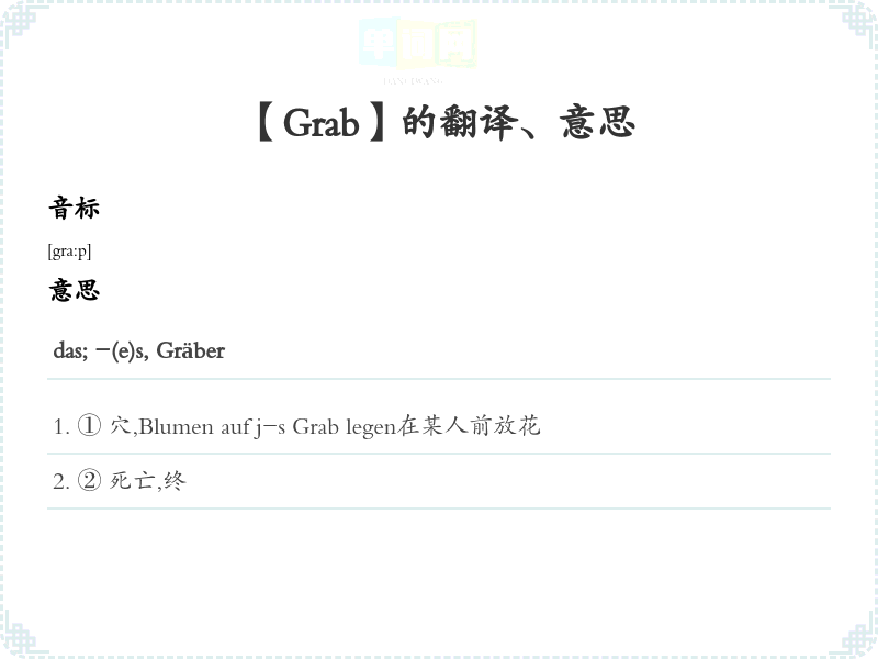 ① 穴,Blumen auf j-s Grab legen在某人前放花