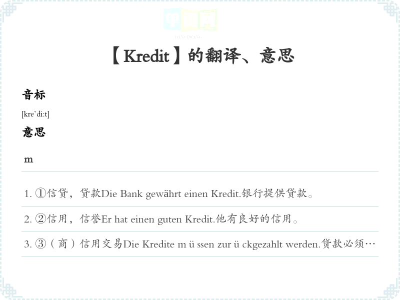【Kredit】是什么意思、字义解释