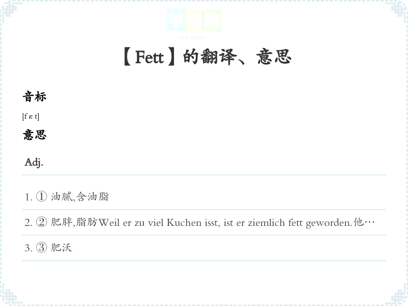 【Fett】是什么意思、字义解释
