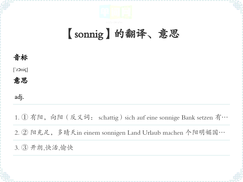【sonnig】 近义词:、 反义词: 联想词