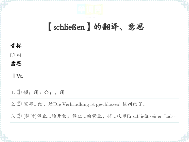 【schließen】是什么意思、字义解释