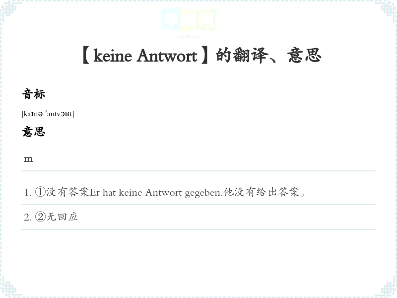 ①没有答案Er hat keine Antwort gegeben.他没有给出答案。
