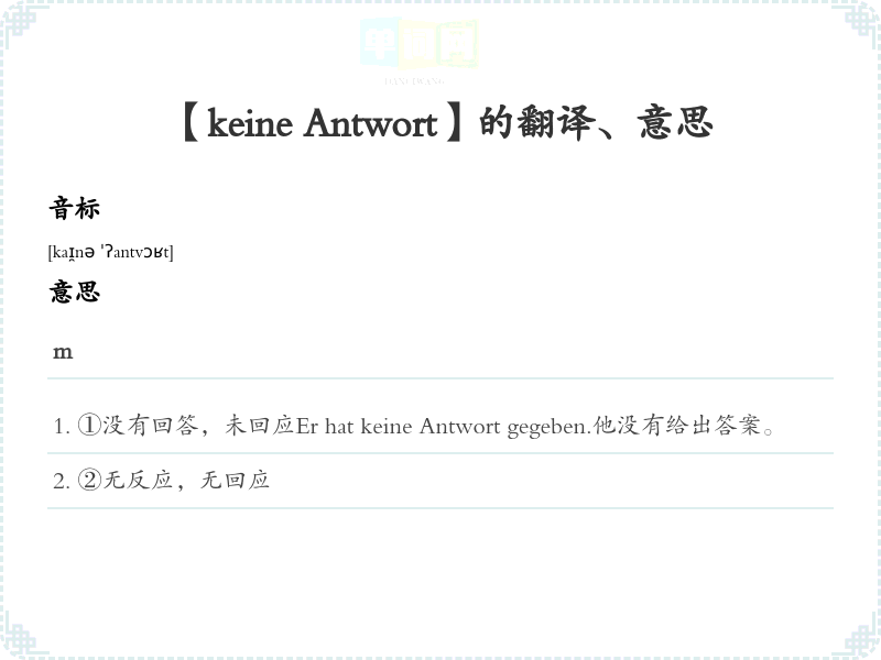 【keine Antwort】是什么意思、字义解释