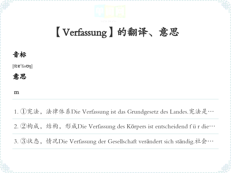 【Verfassung】是什么意思、字义解释