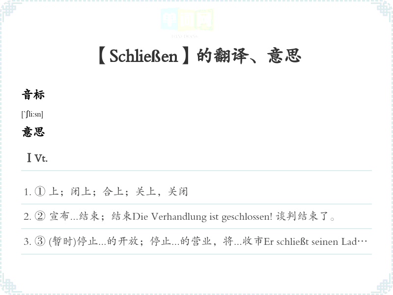 【Schließen】是什么意思、字义解释