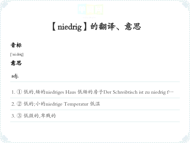 【niedrig】是什么意思、字义解释