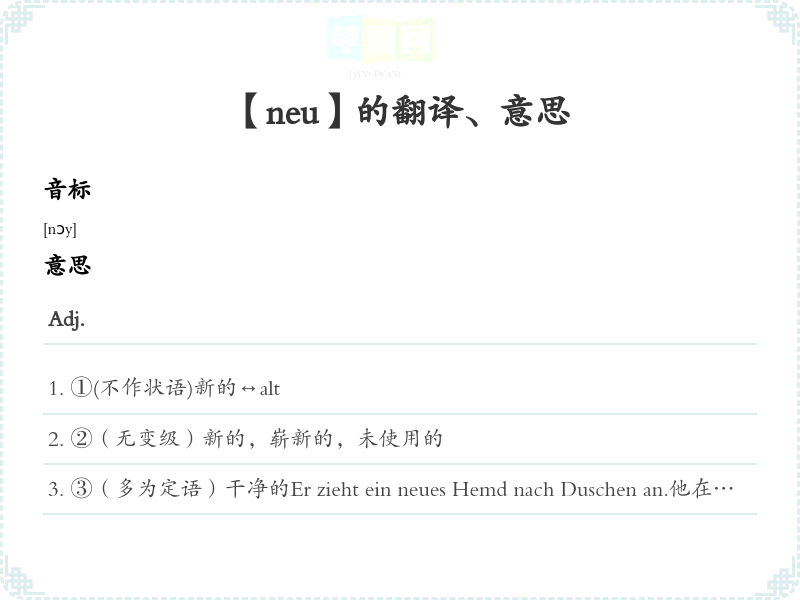 【neu】 近义词:、 反义词: 联想词