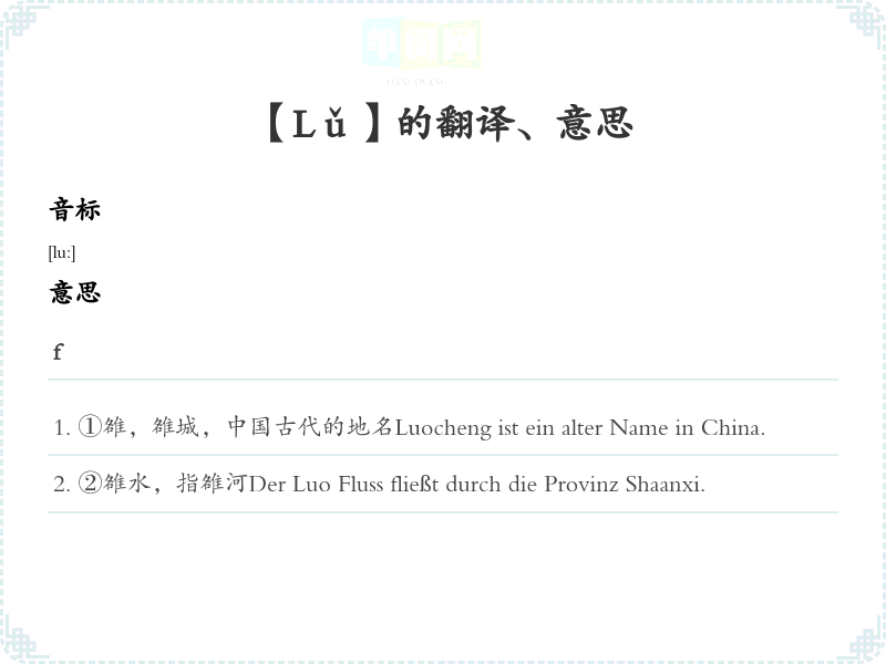 ①雒,雒城,中国古代的地名Luocheng ist ein alter Name in China.