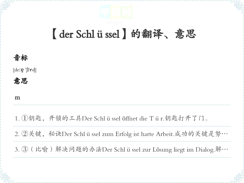 【der Schlüssel】是什么意思、字义解释