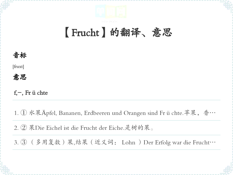 【Frucht】是什么意思、字义解释